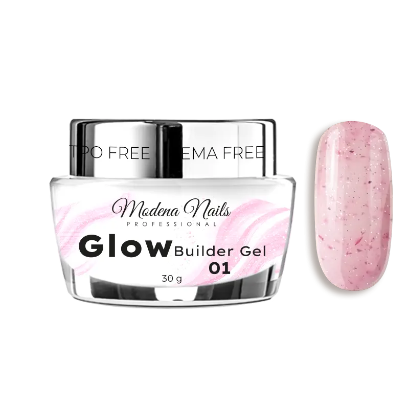 Linia GLOW Builder Gel obejmuje 3 eleganckie odcienie, które zachwycają subtelną grą światła: