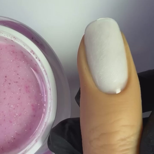 Poznaj GLOW Builder Gel – średniogęsty żel budujący, który łączy subtelność mlecznych odcieni z delikatnym, szlachetnym blaskiem drobinek brokatu i mieniących się płatków.