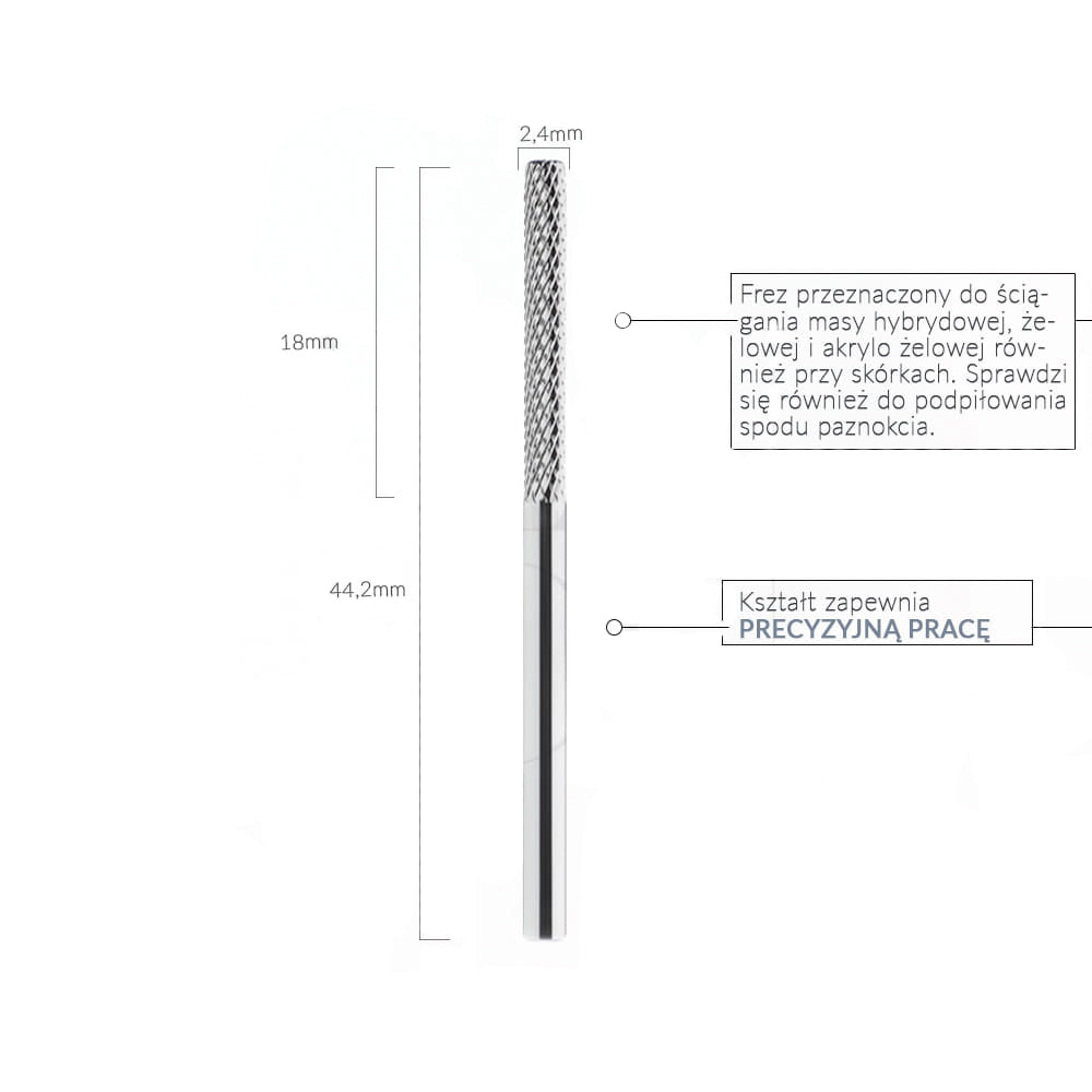 Profesjonalny frez o kształcie walca, przeznaczony do frezowania spodu paznokci, wyrównania powierzchni pod stylizacją oraz dokładnego wykończenia spodu paznokcia. Doskonale sprawdzi się przy stylizacjach żelowych, akrylowych oraz akrylożelowych, zapewniając precyzyjną i komfortową pracę nawet w trudno dostępnych miejscach.