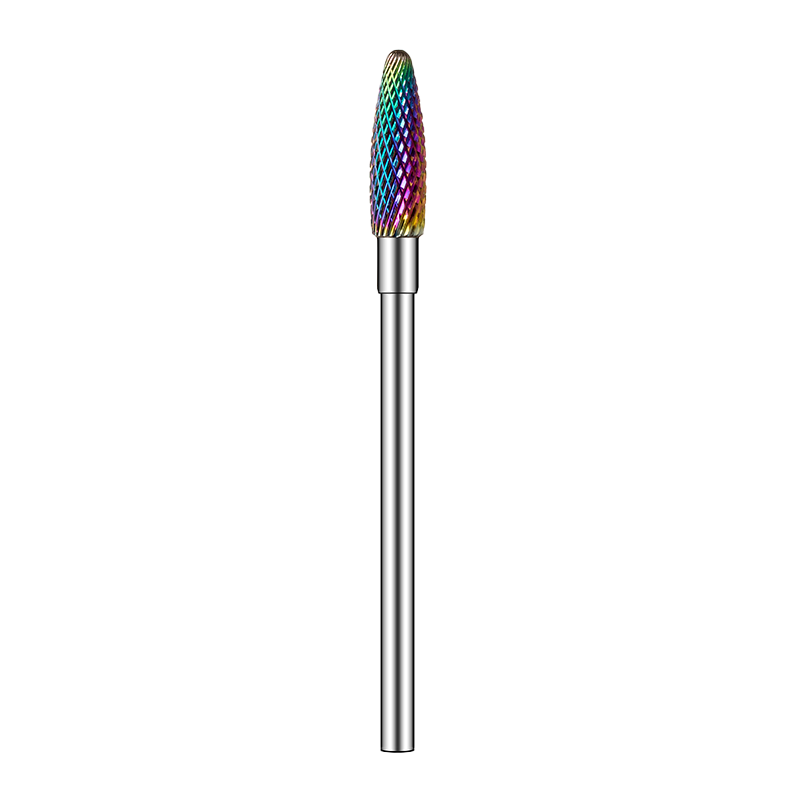 Frez z węglika spiekanego tęczowy – profesjonalny frez do opracowania masy żelowej, akrylo żelowej i hybrydowej.