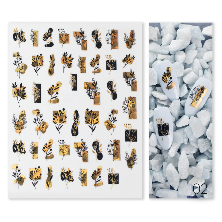 Do wyboru najmodniejsze wzory florystyczne bądź linearne, w białej bądź czarnej wersji, ale każde okraszone złotem. Naklejki posiadają klej.