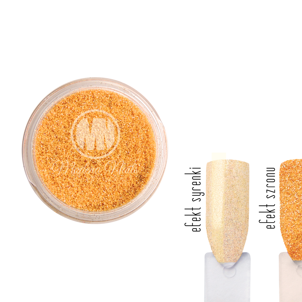 Pyłek bardzo drobno mielony, nadający się również do wcierania (w warstwę dyspersyjną) tworząc taflę na paznokciu.