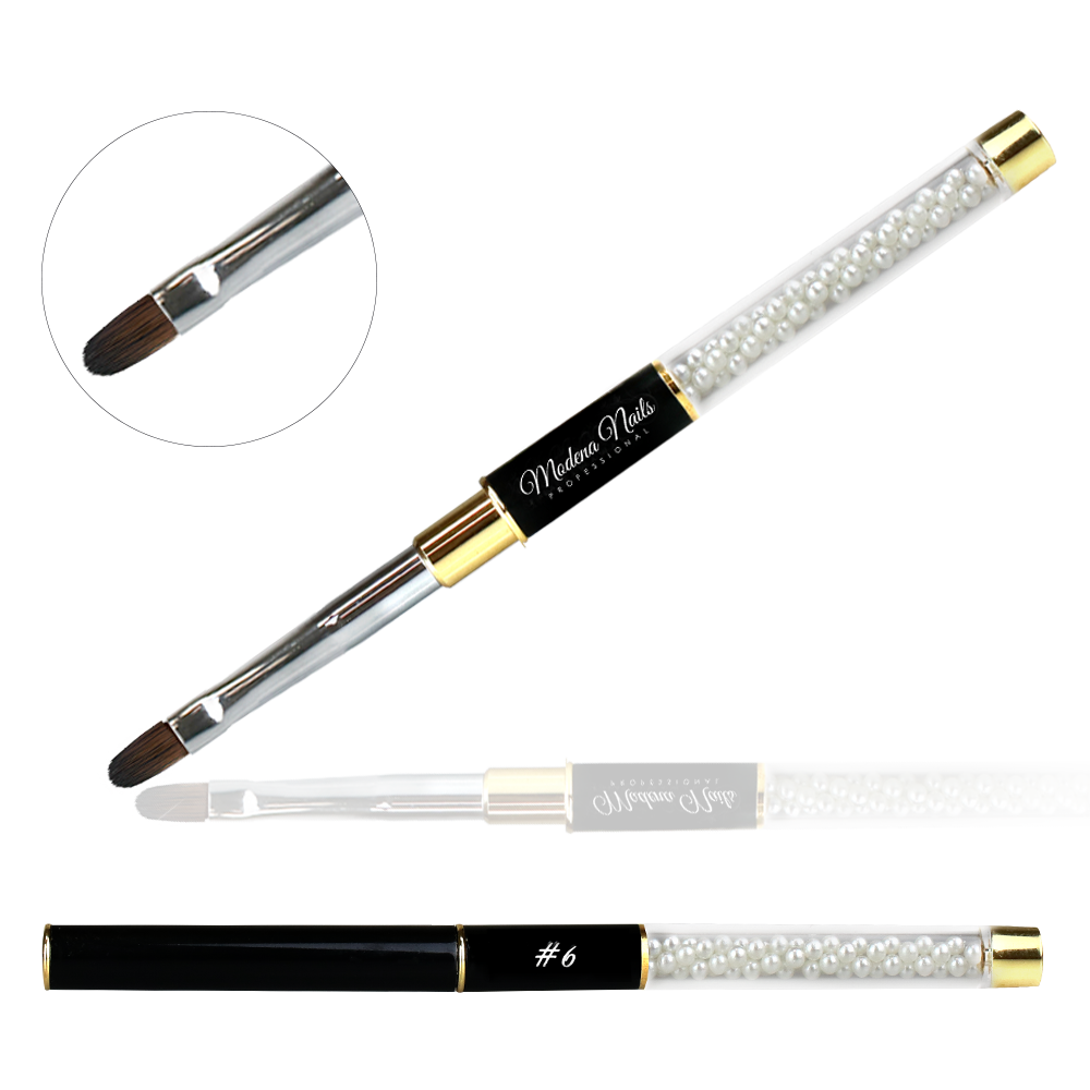 Pędzelek Do Żelu OVAL BLACK PROFI z Perełkami #6