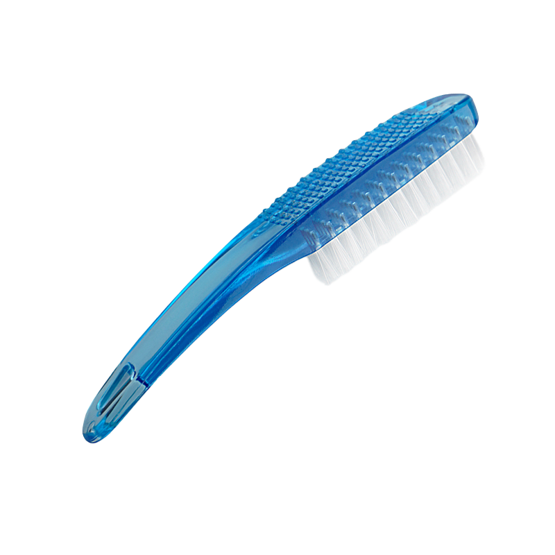 Szczoteczka z rączką w odcieniu niebieskim do odpylania paznokci.