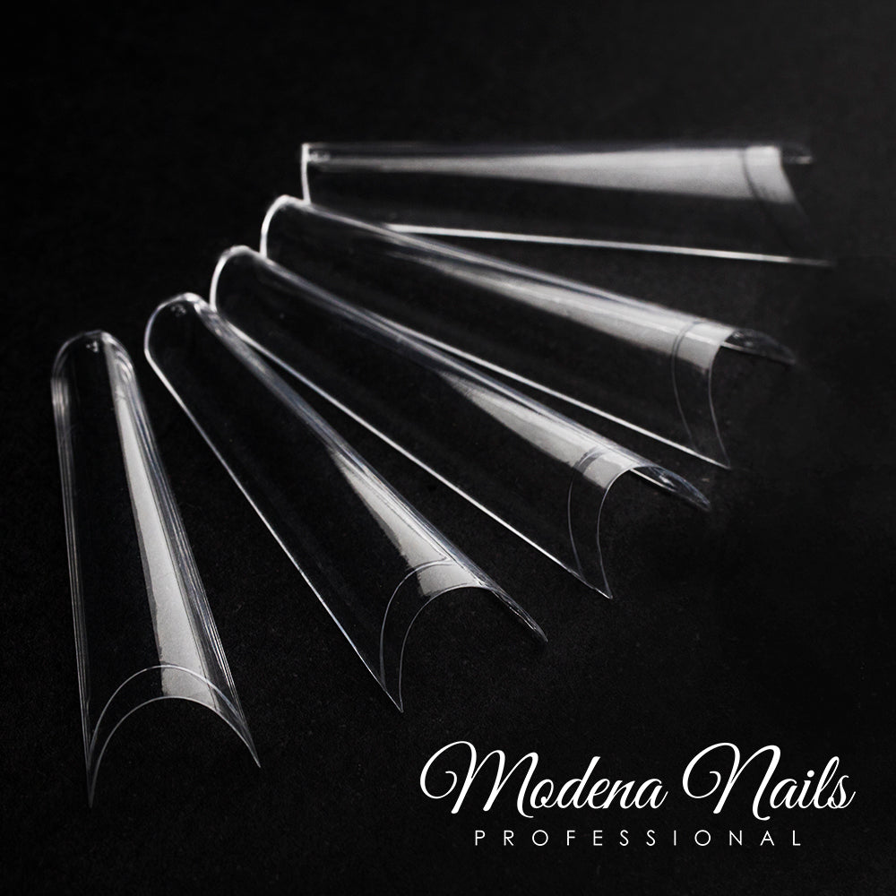 Poznaj Tipsy Exclusive Tunelowe Clear – cienkie, transparentne tipsy bez kieszonki, zaprojektowane dla stylistek ceniących precyzję, estetykę i pełną kontrolę nad kształtem paznokcia.