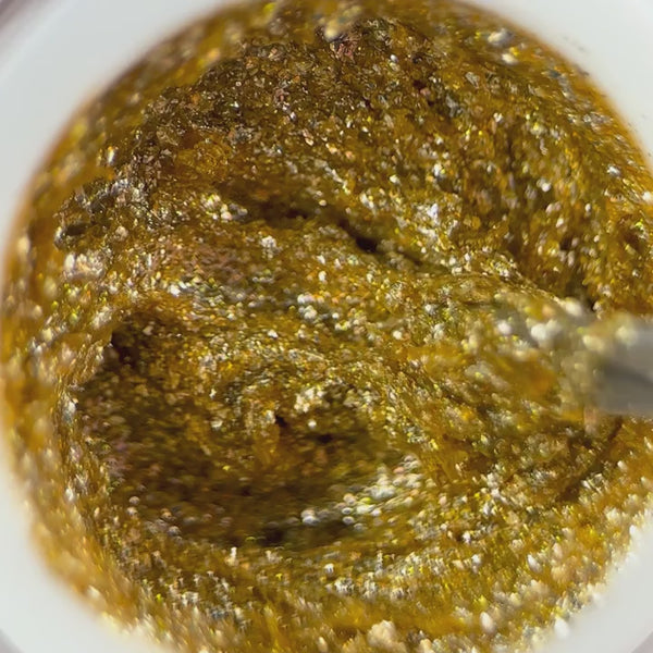Żel posiada wyjątkowy odcień szlachetnego, zmielonego złota o delikatnie metalicznym połysku.