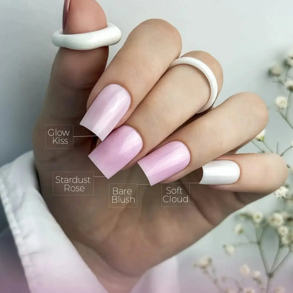 Poznaj Top Glow Bare Blush – innowacyjny top nabłyszczający z delikatnym, subtelnym różowym odcieniem, który nadaje stylizacji efekt zdrowych, promiennych paznokci bez konieczności przemywania.