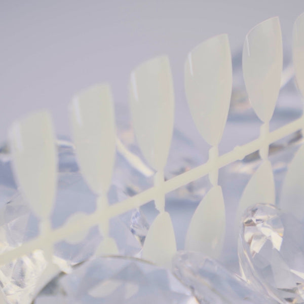 Tipsy przyklejamy za pomocą kleju który utwardzamy w lampie. Tipsy wykonane są z bardzo cienkiego tworzywa ABS które jest elastyczne, wytrzymałe i nie pęka.