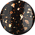 Фрагменти фольги кольору рожевого золота/міді, вбудовані в прозоре верхнє покриття.